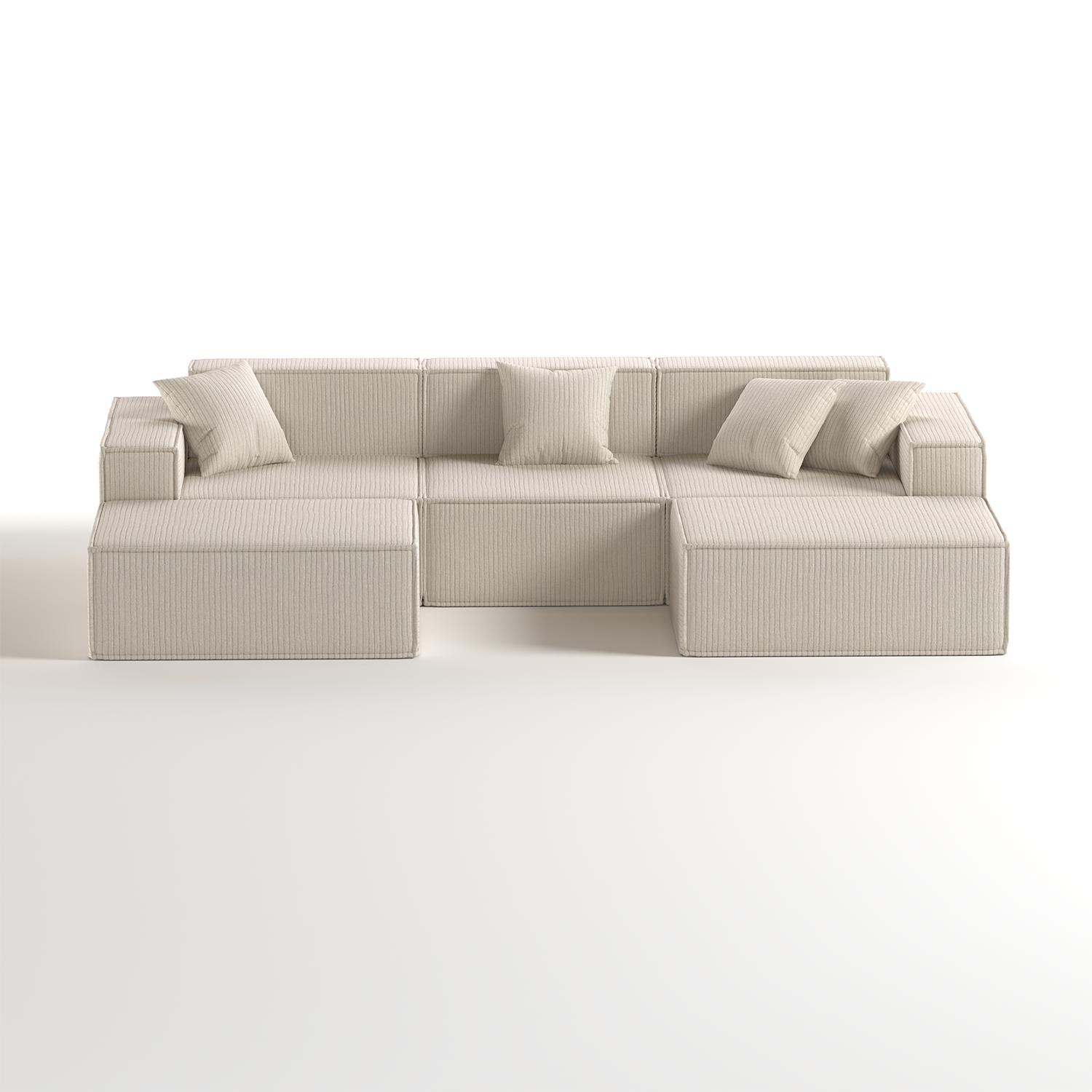 Sofá na Caixa Pelion 3 lugares + 2 chaises em Boucle - Linho